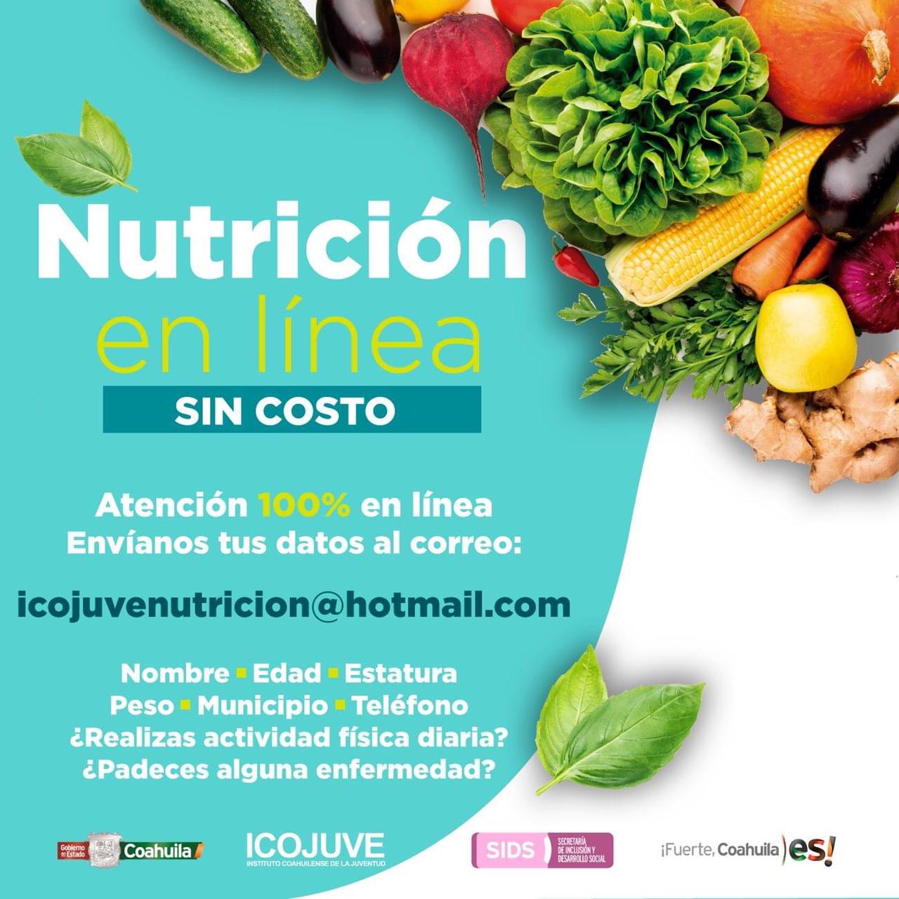 Saltillo, Coahuila de Zaragoza; a 18 de Enero de 2020.- La Secretaría de Inclusión y Desarrollo Social del Estado, a través del Instituto Coahuilense de la Juventud, pone a disposición de las y los jóvenes coahuilense el servicio de consultas nutricionales en línea en forma totalmente gratuita.