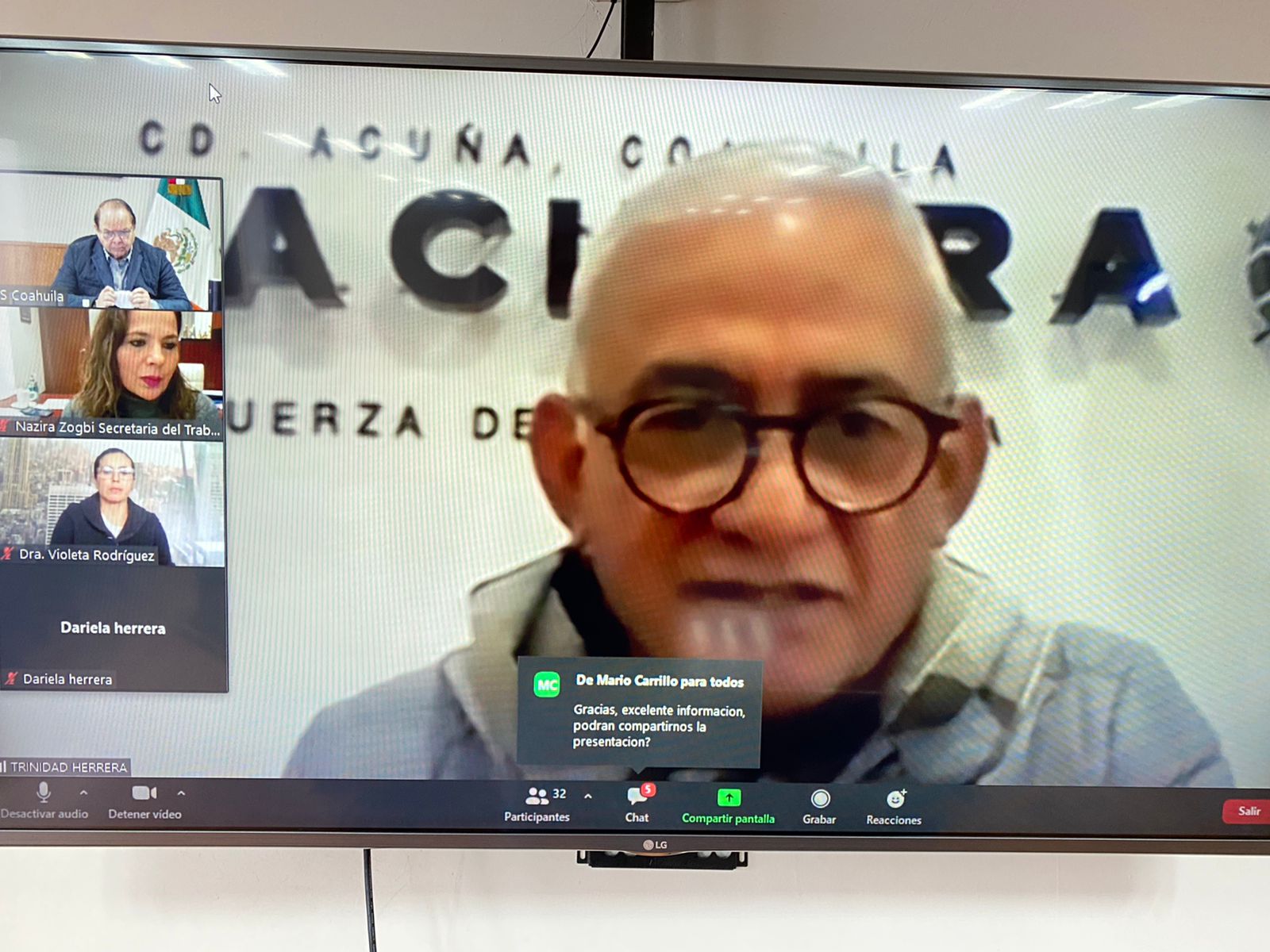 En la sesión informativa – vía videoconferencia – estuvieron presentes la Secretaria del Trabajo en Coahuila, Nazira Zogbi Castro; el representante de la CANACINTRA en Acuña, José Trinidad Herrera Fernández; el Director de la Asociación de Maquiladoras de Acuña INDEX en Acuña, Cuauhtémoc Hernández Castilla, y directores de 20 empresas de la zona.