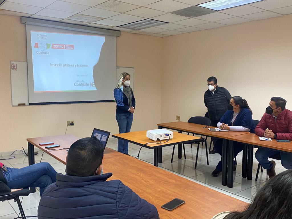 Saltillo, Coahuila de Zaragoza; a 4 de Febrero del 2022.- Con la finalidad de mantener los canales de comunicación con los ayuntamientos que han iniciado sus funciones, la Secretaría de Fiscalización y Rendición de Cuentas del Estado (SEFIRC) realizó reuniones de trabajo con los 38 municipios de la entidad, a fin de darles a conocer las obligaciones que como servidores públicos tienen para presentar su declaración de situación patrimonial de inicio de su gestión.
