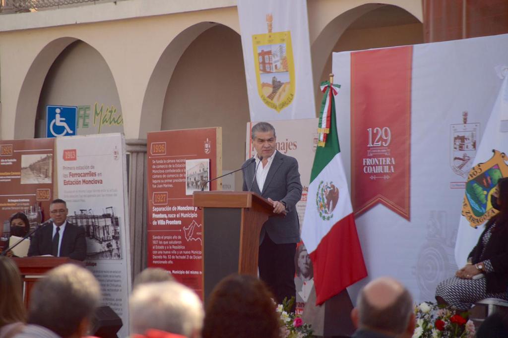 Frontera, Coahuila de Zaragoza; a 16 de Marzo de 2022.- En gira de trabajo por municipios de la Región Centro, el gobernador Miguel Ángel Riquelme Solís presidió los festejos del Aniversario 129 de la Fundación del Municipio de Frontera, donde anunció que para lo que resta de su Administración ha hecho importantes convenios con todos los alcaldes y alcaldesas, porque en unidad cumplirán retos.