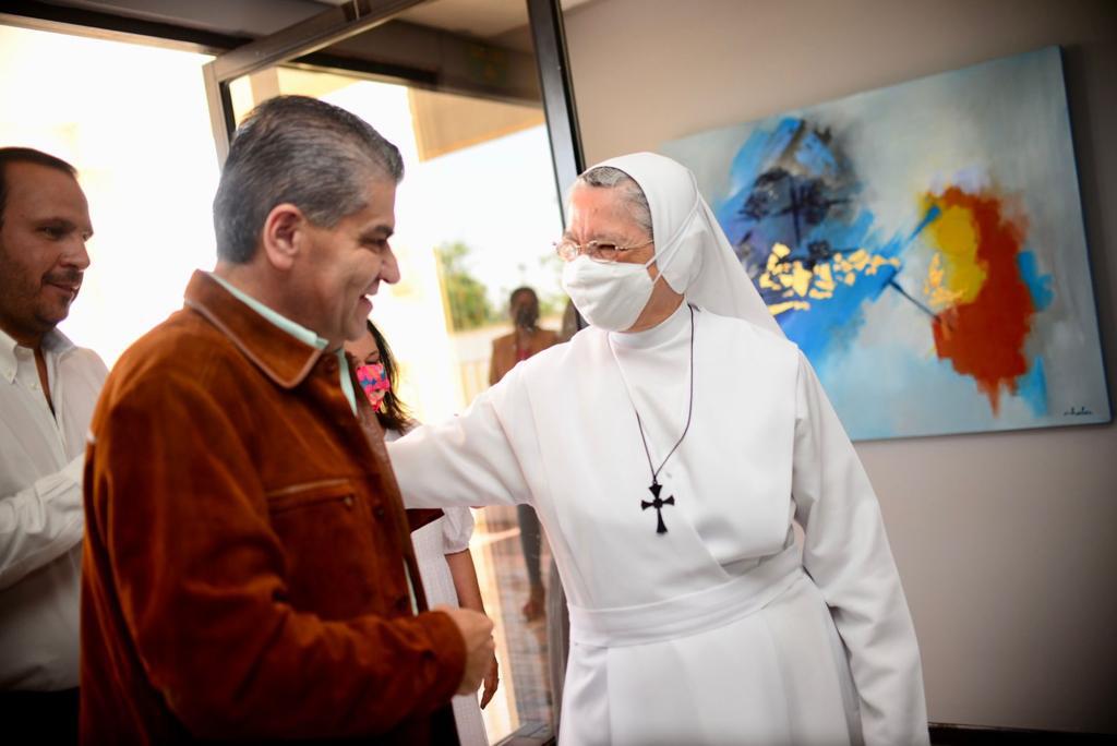 El gobernador Miguel Ángel Riquelme Solís fue invitado a recorrer las instalaciones por la madre Bertha Lozano Escobedo, Directora General de dicho nosocomio, donde fue acompañado por el Alcalde de Parras, Fernando Orozco Lara, y su esposa, Palhoma Riojas Ramos.