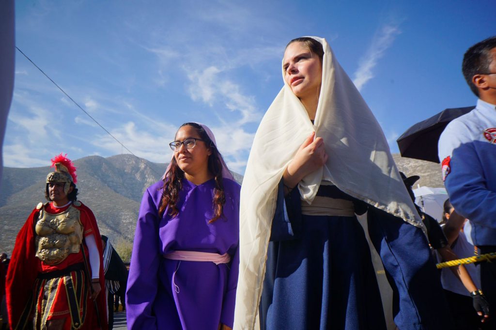 La Secretaria de Turismo y Pueblos Mágicos de Coahuila, Azucena Ramos Ramos, acudió en representación del gobernador Miguel Ángel Riquelme Solís y acompañó al Alcalde de Torreón, Román Alberto Cepeda González, a vivir la pasión y muerte de Jesucristo a lo largo del camino hasta El Calvario.