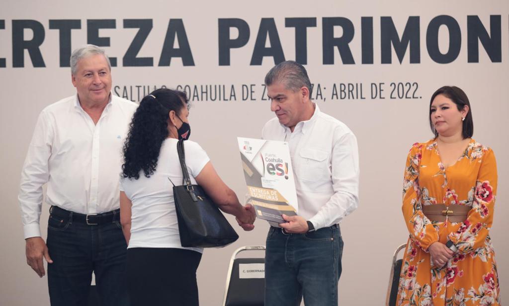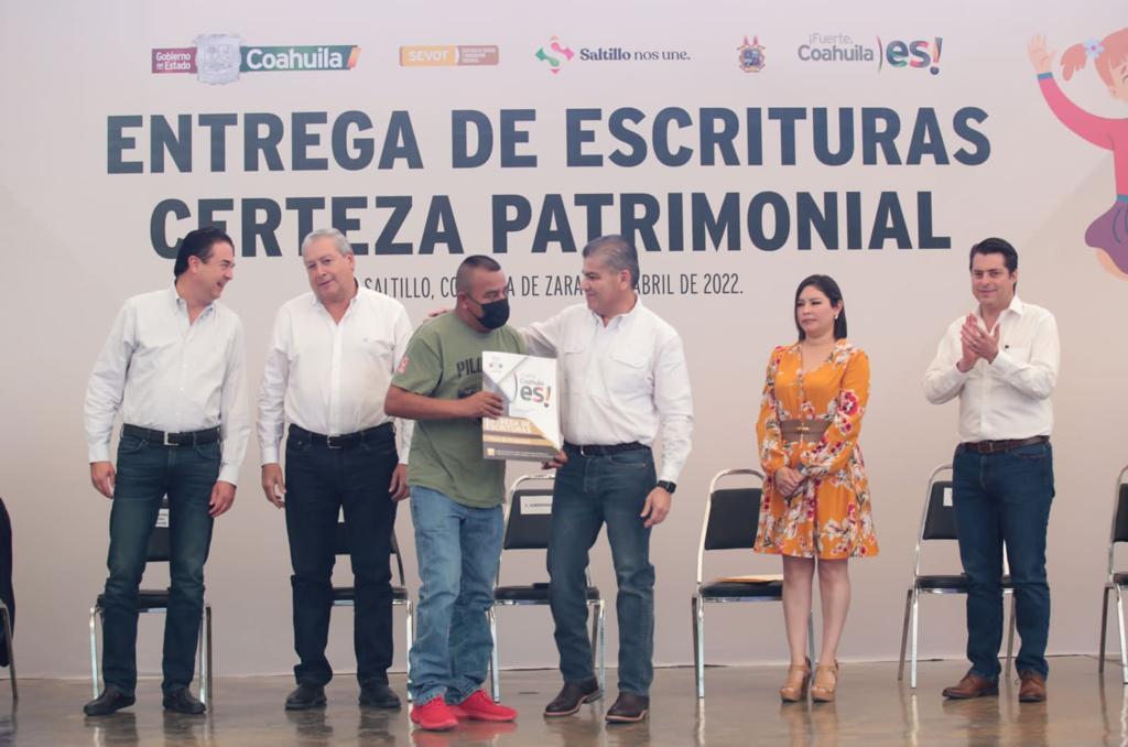 • El gobernador Miguel Riquelme entregó 183 títulos de propiedad a igual número de familias de Saltillo.